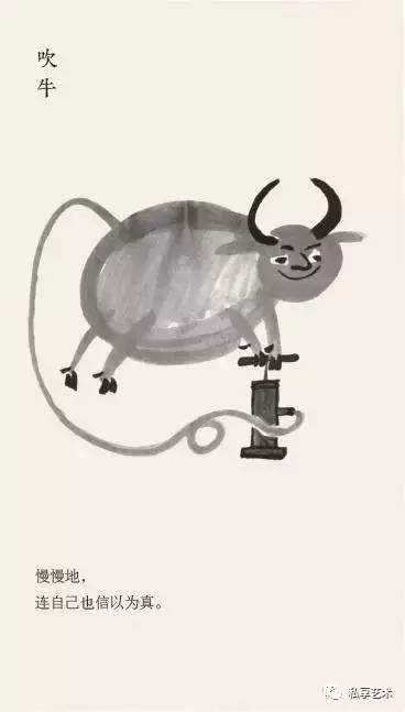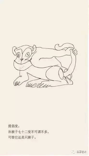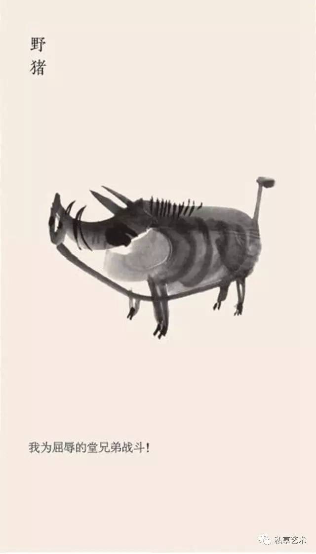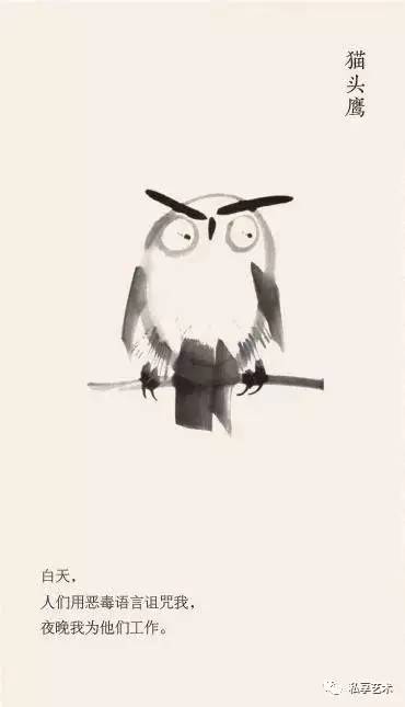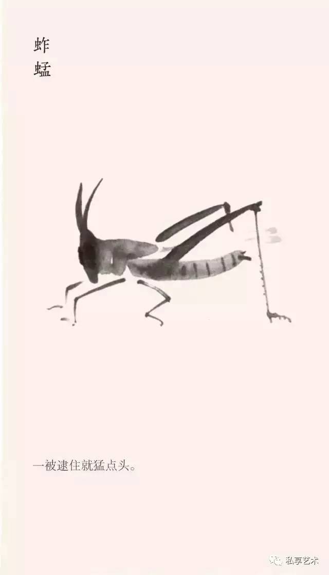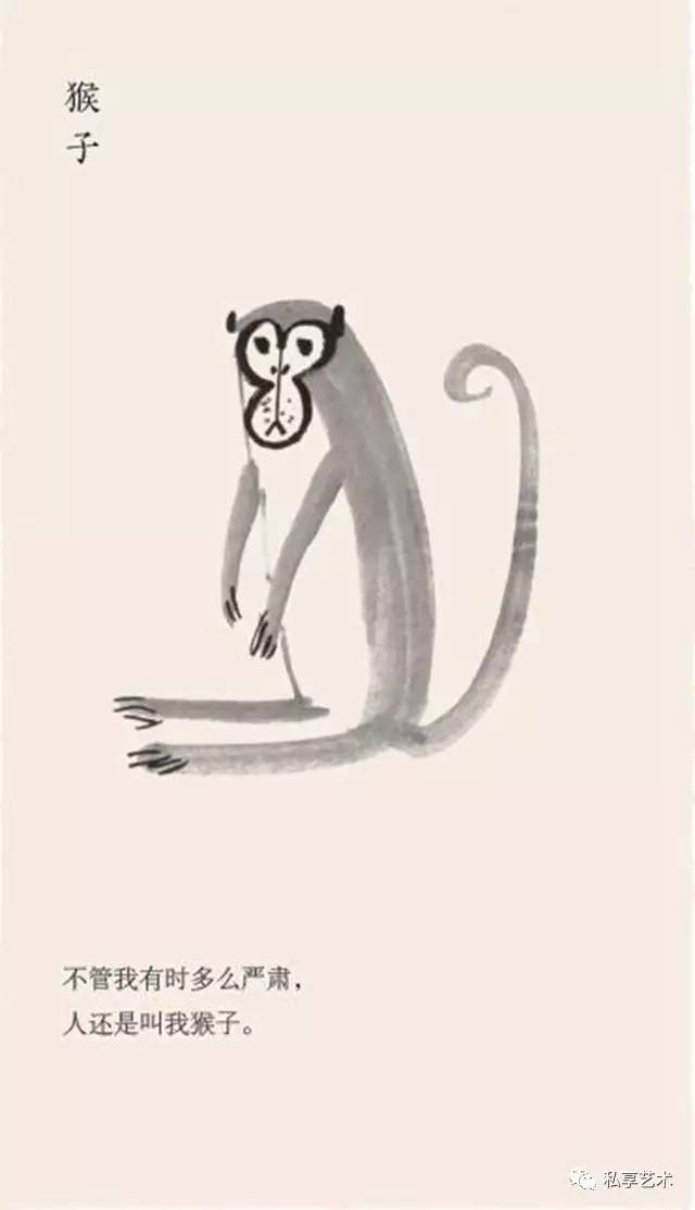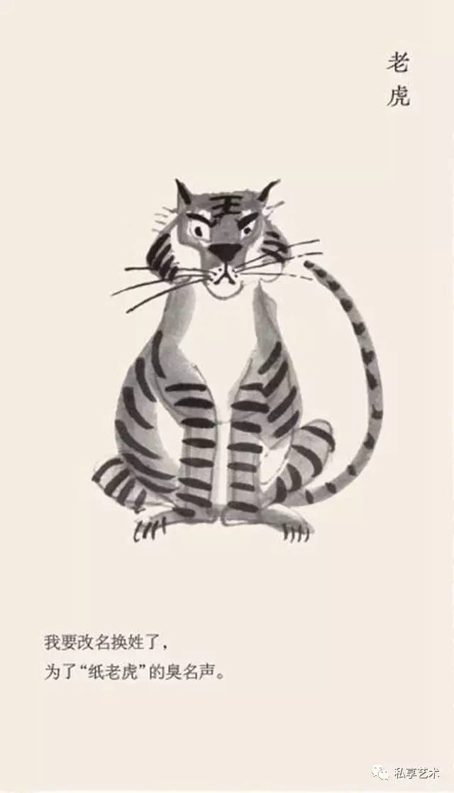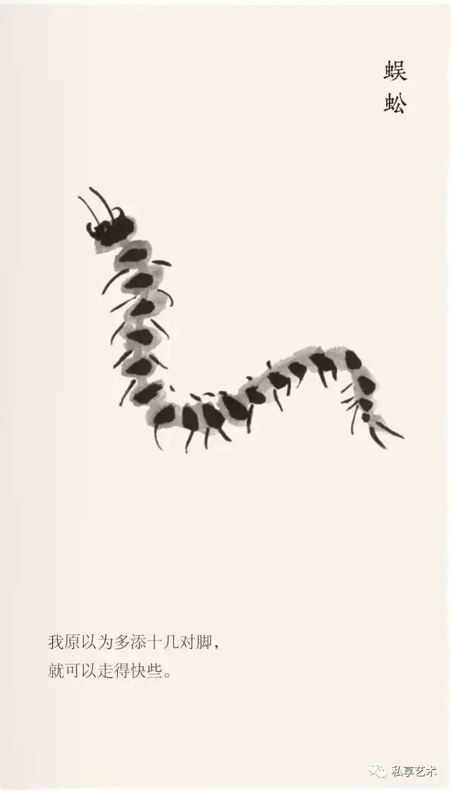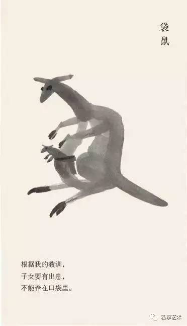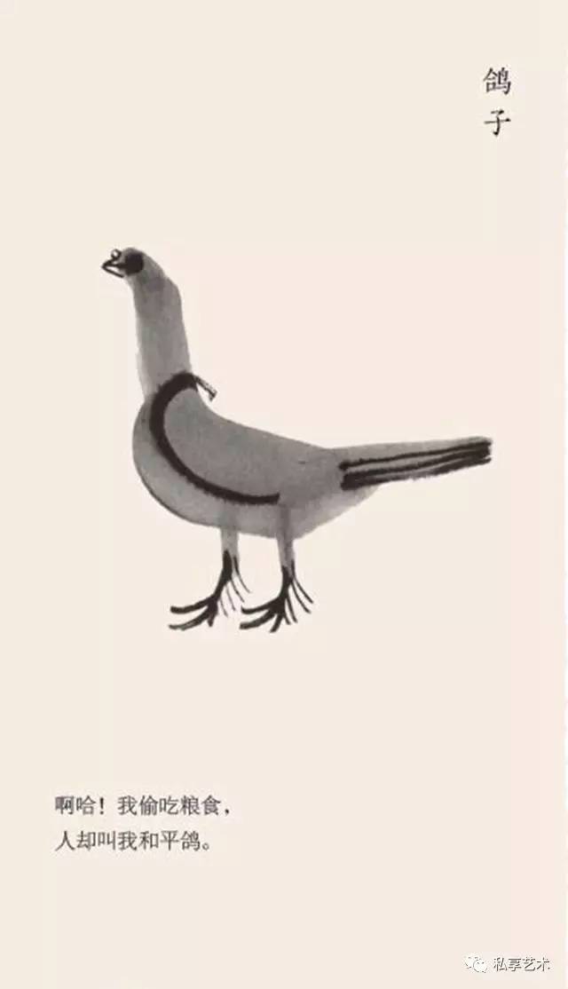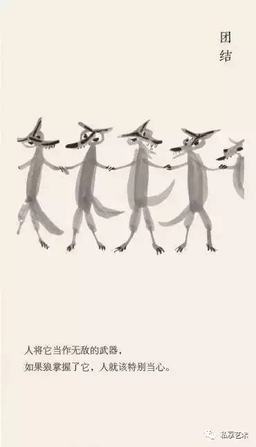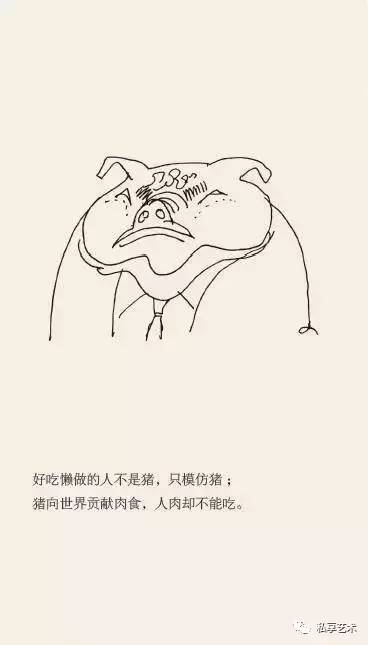 他耐下性子和它们亲密接触,了解其一举一动,抖出这样一段段的寓言故事,一幅画,配上一个短句,幽默、风趣、机智,发人深省。