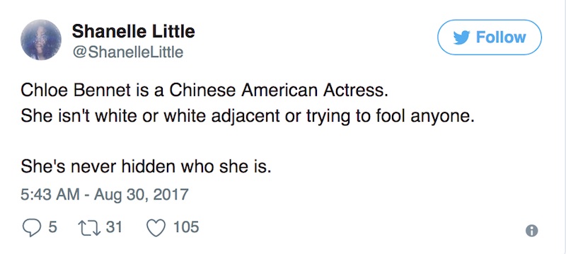 上周,英国演员斯克林(Ed Skrein)为抗议好莱坞“洗白”(white-washing)而退出了漫画电影《地狱男爵》新一集的拍摄。对此,华裔女演员汪可盈(英文名Chloe Bennet)在Instagram上发文表示称赞,结果却因改掉中国姓氏一事又被拿出来热炒并遭到讥讽,引爆了又一场关于种族主义的口水战。