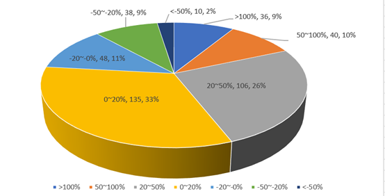 界面新闻梳理了次新板块上市公司中期业绩情况,数据显示,统计的413家次新上市公司上半年营利表现总体较好,但分化较为明显。净利润方面,317家公司同比增幅为正,占比76.76%,其中36家净利润更是同比实现翻倍式增长。同时,也有10家上市公司净利润同比下跌逾五成。