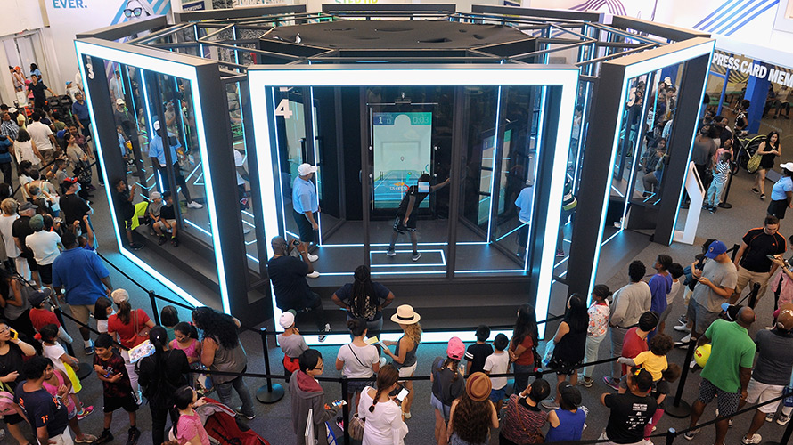 用人工智能把体验式营销玩出花样的,还有美网的另外一个赞助商美国运通。你可能在家里的体感游戏机上玩过网球之类的游戏,不过在美网公开赛现场这种身临其境的感觉还是不一样——美国运通在球场附近设置了一个巨大的体感游戏设备,你可以用自己的身体和手,和人工智能打上一局网球。