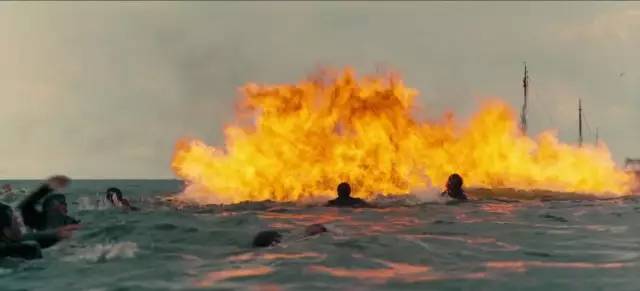 整个氛围都是非常中立冷静的,诺兰甚至专门改了几个剧本中过于残酷的情节。譬如在最初的版本里,那位法国士兵被海上燃烧的机油烧死;成片中,这一幕被淡化,是有几个人身陷漂浮的燃油大火,但多处于后景。