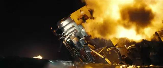 譬如一艘驱逐舰遭轰炸着火的段落,从起火、船体侧倾、到纷纷跳船、直至最终沉没的过程,景别和机位变化不多,也并未有刁钻的拍摄视角,你可以说这是冷静呈现,但至少詹姆斯·卡梅隆镜头下泰坦尼克号的沉没更加令人印象深刻。