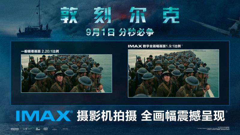跟随诺兰的镜头,一起与敦刻尔克海滩的士兵在IMAX银幕上共进退;跟随汉斯·季默的配乐,凭借IMAX激光校准的数字环绕音响系统,在1940年的英吉利海峡激情澎湃。