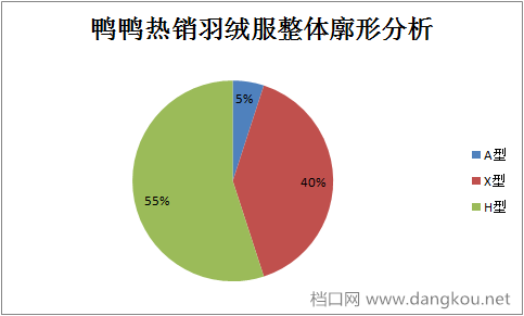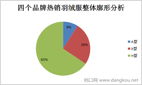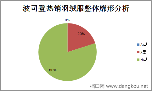 由上图数据分析显示:波司登羽绒服在女士羽绒服开发中,比较注重对H廓形的产品开发。