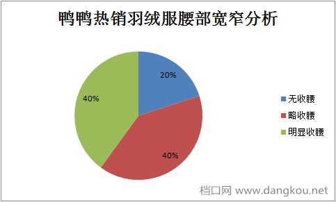 鸭鸭品牌在同一设计点上,略收腰的腰部宽窄处理方式相对品牌整体的腰部宽窄处理情况受到了一定程度的减弱,而对明显收腰式的女士羽绒服腰部宽窄的处理则得到了相应的加强。