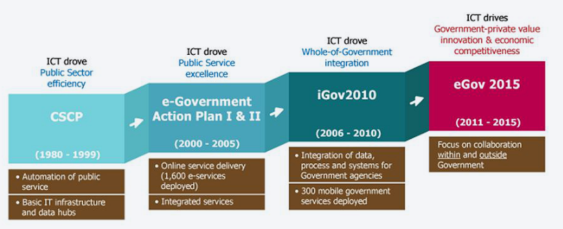 Singapore eGov Masterplans:https://www.tech.gov.sg/About-Us/Corporate-Publications/eGov-Masterplan