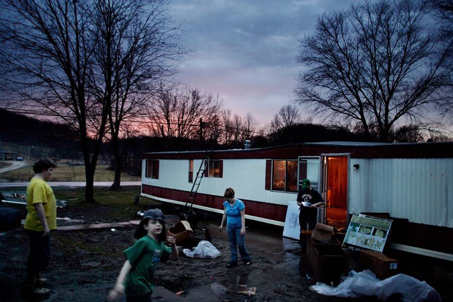 ▲ 美国俚语中,将贫穷的白人称为“White Trash(白色垃圾)”,暗示较低的社会阶层和不体面的生活方式。在使用这个词的时候,人们往往特指一些生活在社会边缘,被主流社会视为危险分子的人。他们常和犯罪沾边,行为不可预测,对权威、法律和道德缺乏尊重。图为一俄亥俄州一白人家庭正在将他们的家当往拖车里搬运。 Matt Eich / the Atlantic