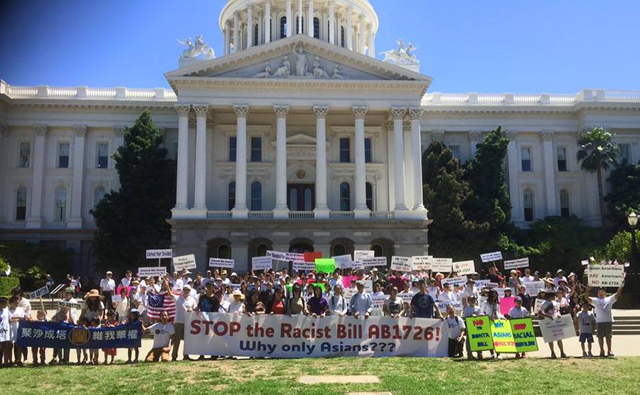 ▲ 2016年8月,集会者反对“亚裔细分法案”。 SVCA