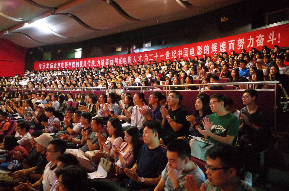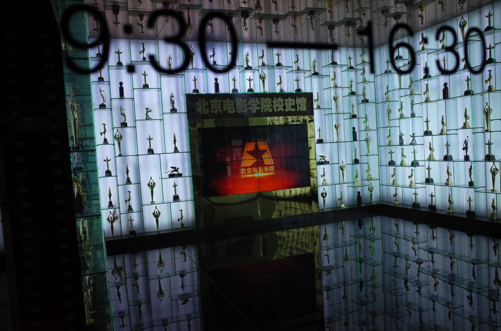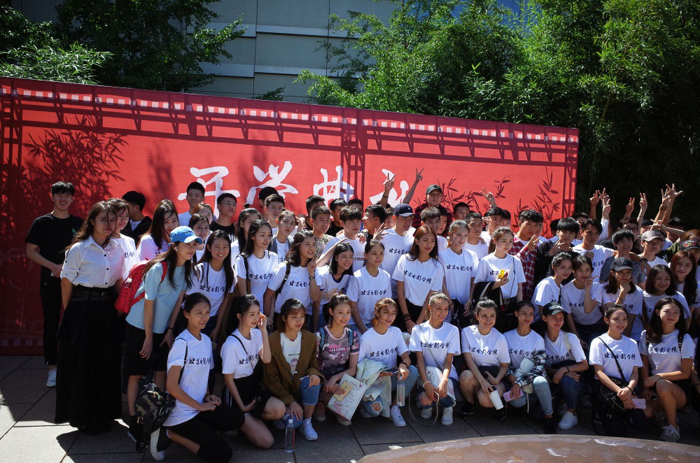 9月5日举行开学典礼,或许是我到达时间与新生集合时间差不多,保安没有拦我。在好奇心的驱使下,我跟着新生一起去参加典礼。院长的讲话非常贴合时代,其中有一句话很有意思:《战狼》的成功是天时地利人和。”典礼结束后已近中午,我坐在花园里休息,旁边突然出现一名身扛“炮管”的摄影爱好者,他把守住学生通往食堂的要道守株待兔,熟悉的快门连拍声音又在我耳边响起。没过多久,他被保安请了出去。我的相机很小,放在包里,没有被发现。北影的保安对于这些“野生”摄影爱好者,嗅觉十分灵敏。于是我躲到了纪念品商店,与店长成为了朋友,并且以此作为“据点”和“掩护”继续拍照。在这里对店长表示感谢。