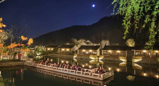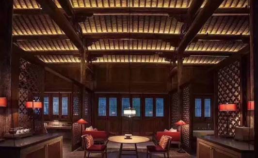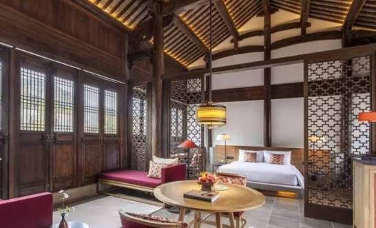 酒店由古朴典雅的徽派建筑群组成。五十幢的建筑体都具有200-400年历史,由200多位深谙中国建筑、装饰之道的能工巧匠,以代代相传的营造法式解读建筑的原生状态,秉持“整旧如旧”的修复原则,坚持“原材料、原工艺、原结构、原式样”,将细节修缮至其本来面目。一砖一石,一窗一瓦,一楹一柱,无不保全中国文化尊严和传统艺术精髓。