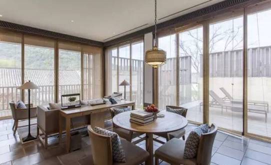这个由上海秦森集团历经7年倾力打造、有着徽式老宅元素的奢华酒店,宛如一个小型居住艺术博物馆,入住体验不啻为一次充满惊喜的帝王般的旅程。整个酒店低调、静谧、优雅,藏于名山脚下龙脉之处,室外景观步道惬意舒适。室内设计既有收藏版老宅的古朴,又极具现代美学的赏心悦目。内装、家具格调品位独树一帜,居住起来极其舒适,不愧为世界顶级酒店设计大师、安缦酒店设计师Jaya的关门之作。