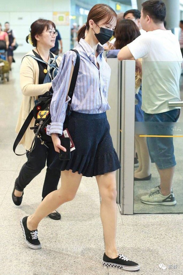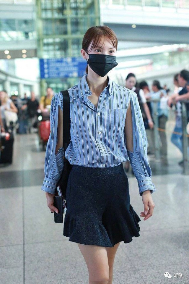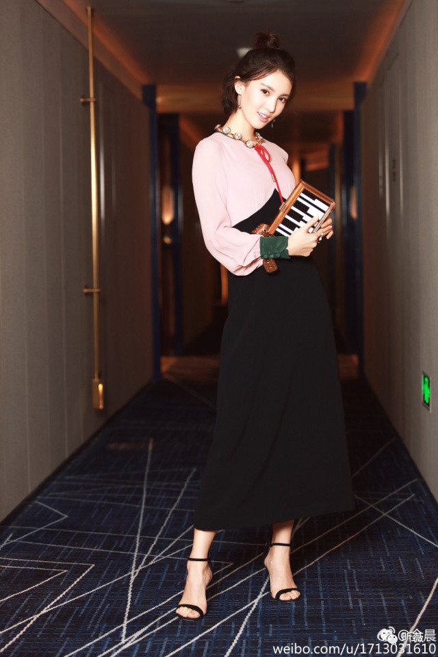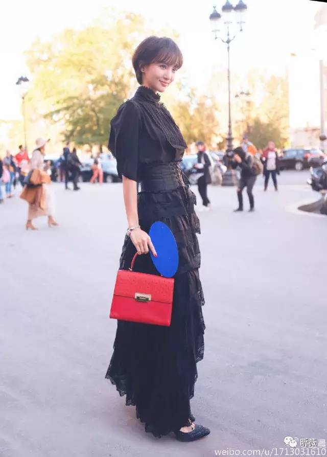 H型长裙本身带有一种法国女人般浪漫优雅的感觉,金晨穿起这种风格的长裙,在她俏皮的短发和清秀的五官下更多了一身精致的时尚感。