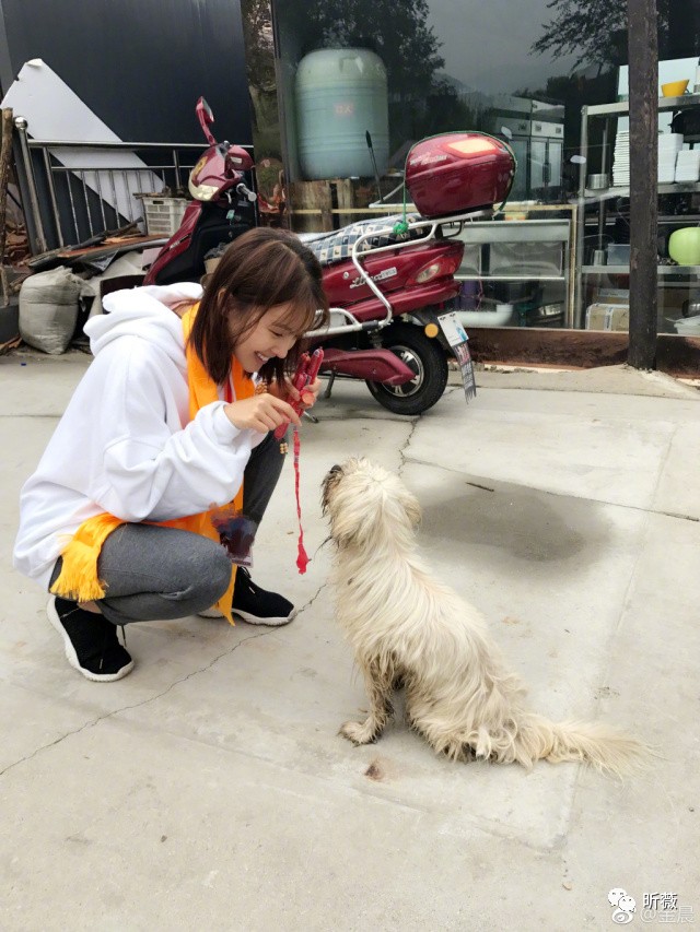 路上遇到流浪狗,即使小狗满身污泥,她也没有丝毫嫌弃反而是买来香肠喂小狗并呼吁大家关爱流浪动物。