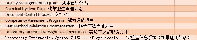 为了符合CAP的实验室认证要求,实验室还必须建立以下关键文件体系:
