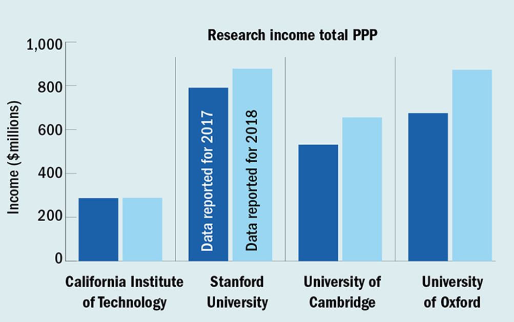 该排名发布13年以来,英国高校首次霸占榜单第一、二位。能获得好成绩,倒不是因为学术水平与其它竞争者拉开差距,而是由于英国高校经费补贴大幅增长。相比之下,加州理工学院和斯坦福大学等劲敌的经费却下降。不过,等正式走完脱欧程序,英国高校经费还能不能维持现有水平还值得商榷。