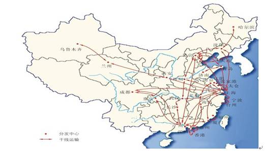 (图为招商物流在全国的部分运输线路)