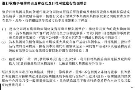中国外运收购招商物流有助于公司进一步扩大其在中国物流市场的范围。