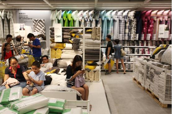 在宜家里,我们随时都可以看到有人坐在沙发上甚至躺在大床上,这已经成为一个很普遍的现象了,毕竟这里所推崇的就是消费者的亲身体验,唯有这样才可以让他们感受到不同产品带给他们的不同感受。
