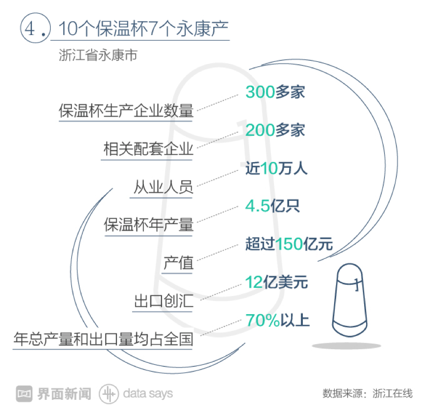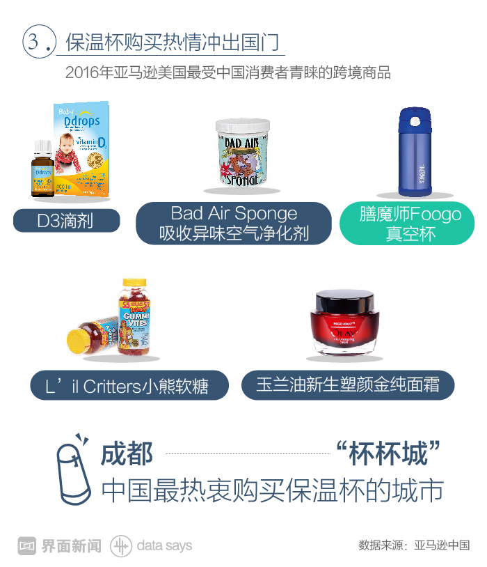 中国消费者对保温杯的购买热情已经蔓延到了国外。亚马逊中国在今年1月发布的《2016跨境网购趋势报告》显示,膳魔师Foogo真空保温杯是最受中国消费者青睐的跨境商品之一。不过还是要提醒你,你千里迢迢从国外背回来的保温杯很可能产自浙江永康,一个拥有300多家保温杯生产企业、保温杯年产量达4.5亿只、出口创汇12亿美元的县级市。