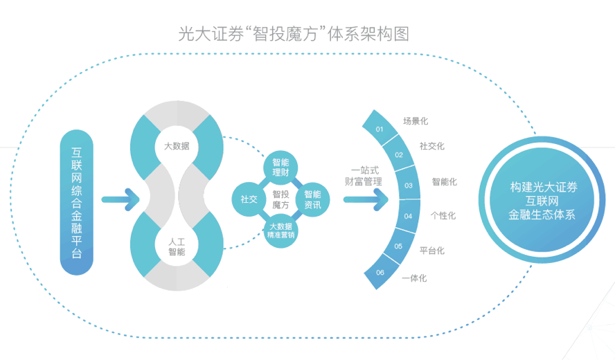 据悉,光大证券金融科技产品“智投魔方”,是以人工智能技术为基础,以大数据平台为依托,集智能理财、金融社区、智能资讯、大数据精准营销“四位一体”,与交易、理财形成有机结合,构建了生态化、场景化服务。平台通过对用户特征的精准刻画及深度挖掘,融合社区在线人工服务,实现精准服务、主动触达,为用户提供多场景的、实时的、个性化的金融服务和产品,并跟随用户行为、投资偏好、风险偏好等的变化,及时调整金融产品和服务的供给。