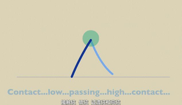 假设动物利用两根棍子行走,那么运动中的最低点是接触位,最高点是过渡位。