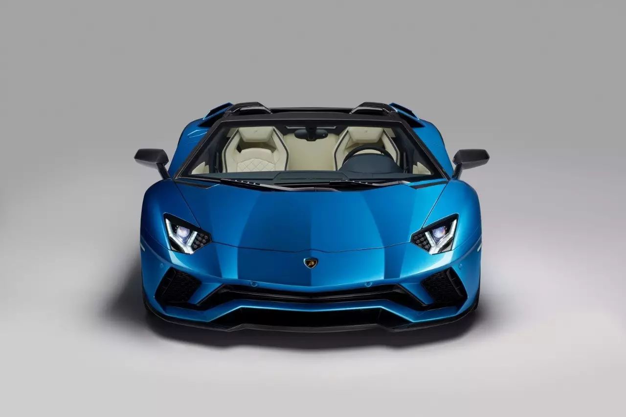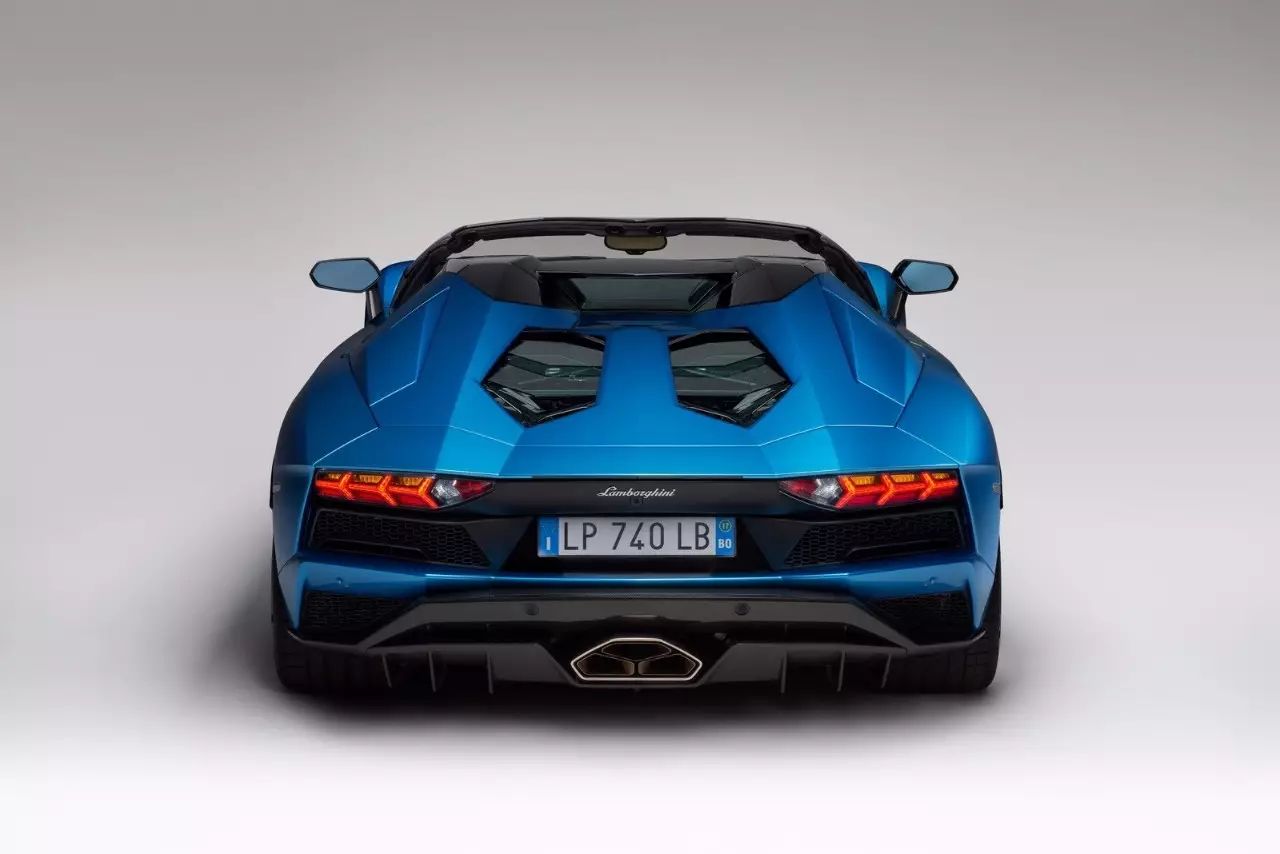 2018 Lamborghini Aventador S Roadster,这是一头带有后轮转向系统的大蓝牛。它的固定车顶由碳纤维打造,重量不到6公斤,这头730马力的蛮牛,将在法兰克福车展正式亮相。