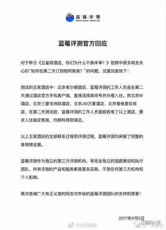 大叔发现,媒体和网友的质疑,主要集中在两方面:1、是否是独立评测机构?2、如何在第二天订到相同的房间?