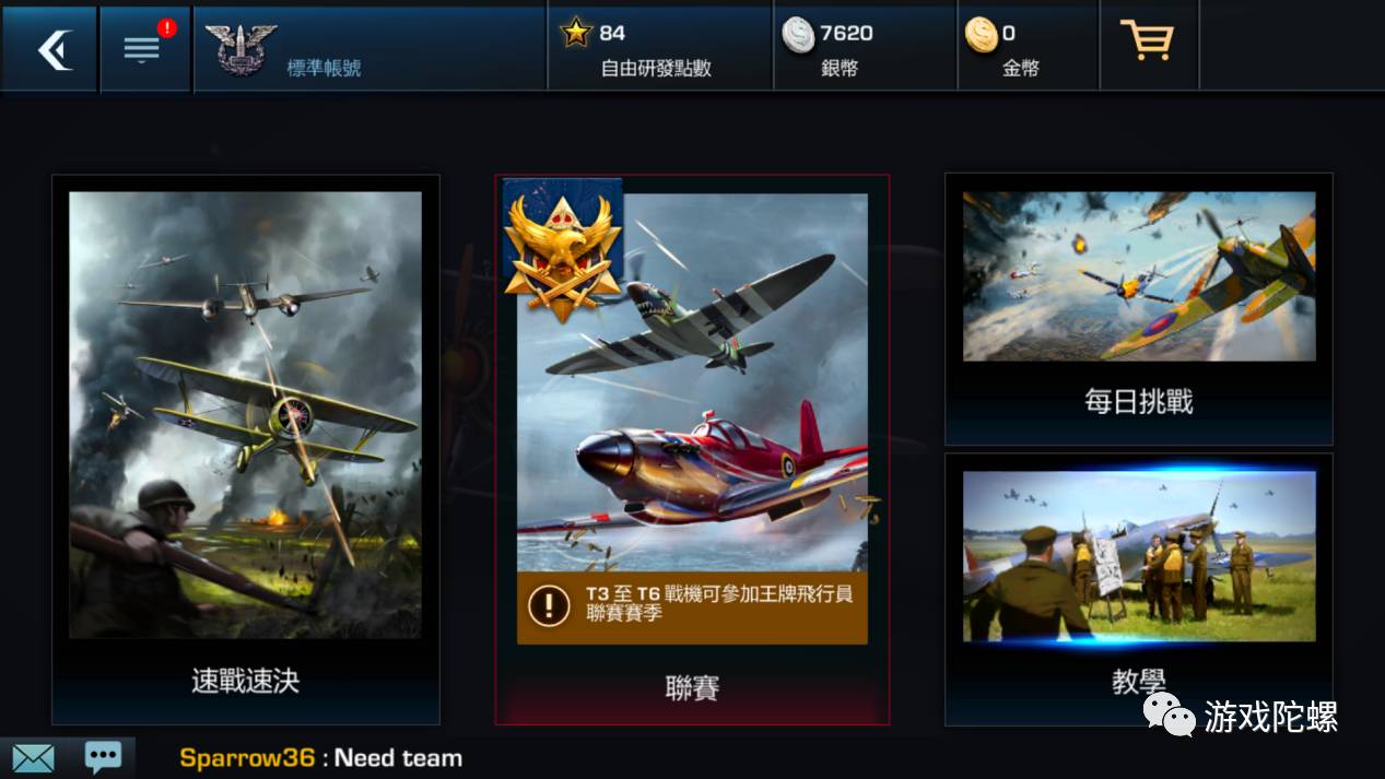 游戏的主要游戏模式还是PvP,单人随机,组队2v2或者4v4,此外也有每日挑战等模式给玩家领取奖励。游戏匹配的速度相当快,当然这是一个良性循环的过程,DAU越高玩家的PvP体验就越好。手感上,这其实对于空战游戏来说是个处理的难点,特别是在手机上的空战游戏。众所皆知,比起像是赛车类的操作,对飞机的操作肯定是要复杂得多,无论是在现实中还是在电子游戏中。操控飞机也一直是一些玩家在其他战争游戏中的阿喀琉斯之踵,如PC上的《战地》,技术高超的飞行员往往就是队伍中的真大腿。所以在操控上,要如何将复杂的操作简化,同时又不能过度压缩操作空间是一个难题。在《浴血长空》中,一开始玩家是可以感觉到操作是偏简单易上手的,但是随着游戏的进行还会解锁像是其他武器和战术规避等新的操作,重点是,PvP的战斗可以让简单的操作也体验到激烈的对战感觉,在有8个玩家互相追尾、闪避、配合的时候,即战感会很容易被放大。所以这也是《浴血长空》做成实时PvP游戏的正确回报。