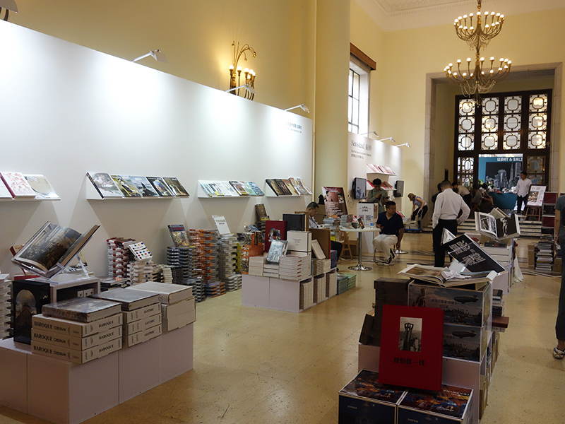 北京美术摄影出版社的图书展销,旁边还有供读者免费取阅的多家媒体的杂志。