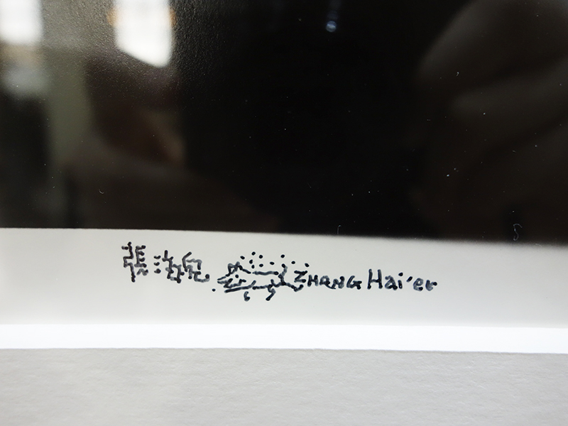 艺术家张海儿的签名。张海儿的个展《缪斯》在上海摄影艺术中心正在举办。