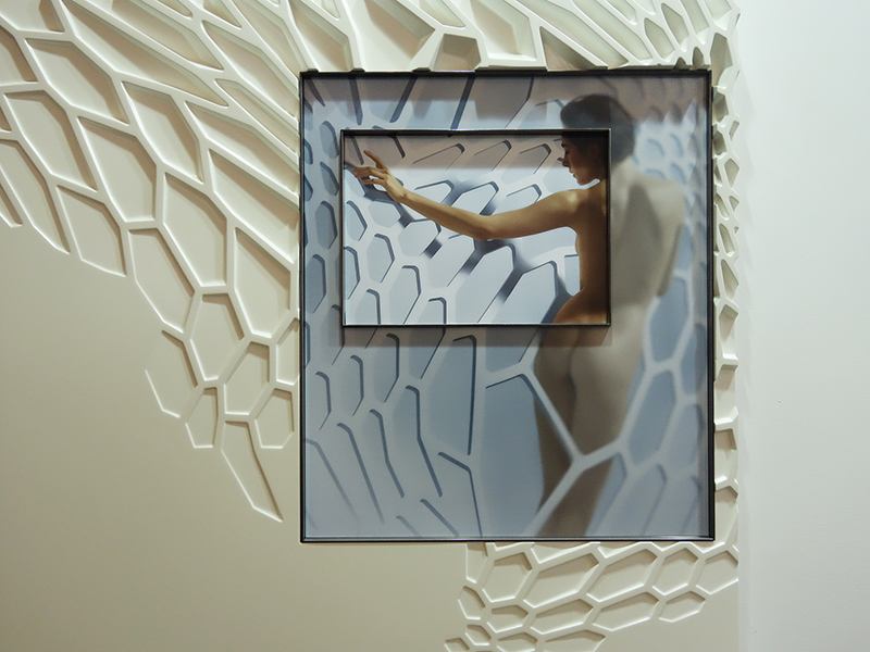 阿姆斯特丹画廊带来艺术家CASPER FAASSEN的作品,这个系列作品的工艺非常复杂,在照片的前面附有一层玻璃,玻璃上绘有裂纹的图案,使整件作品有一种柔和的光晕。