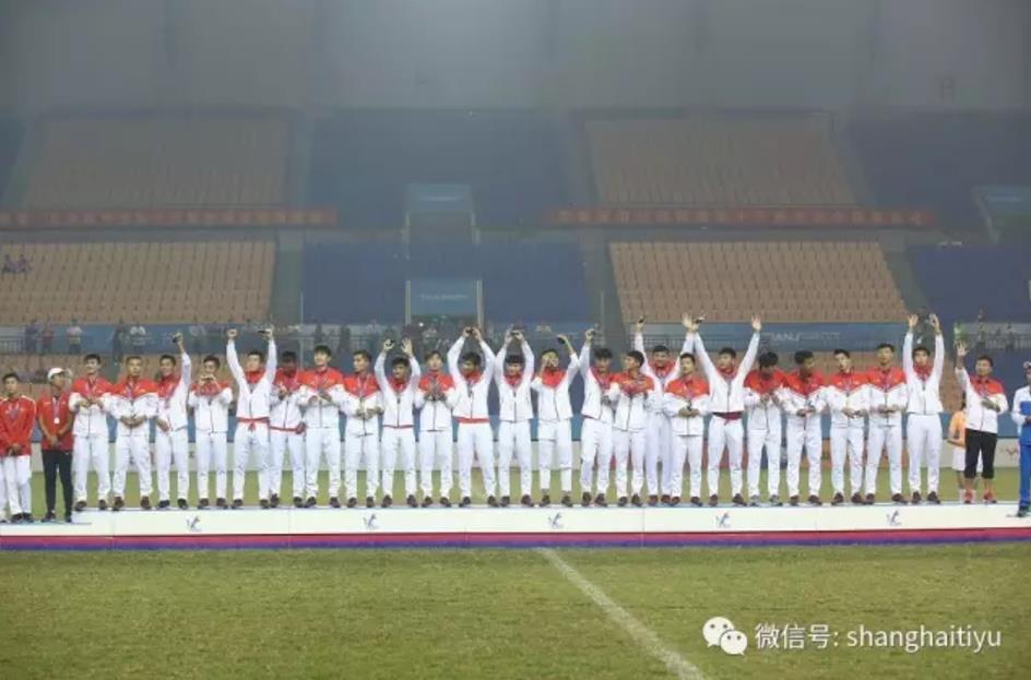 拿到这块金牌的上海队,成为历史上第一支连续三届夺取全运会男足大年龄组比赛冠军的球队!