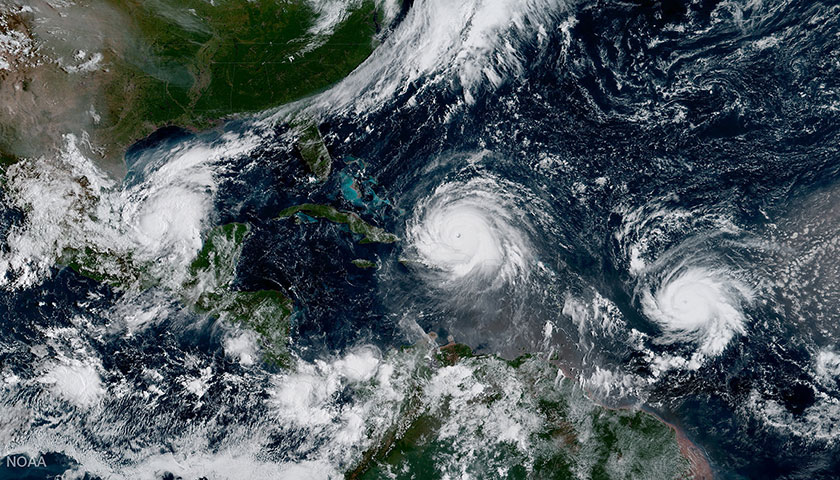 科罗拉多州立大学气象学家Phil Klotzbach称,这是7年来第一次三大飓风同时出现在大西洋盆地(Atlantic Basin)。