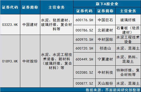 中国建材的主营业务包括水泥、混凝土销售、轻质建材销售、玻璃纤维与复合材料等,中材股份的主营业务则包含水泥、水泥工程技术装备、新材料等。