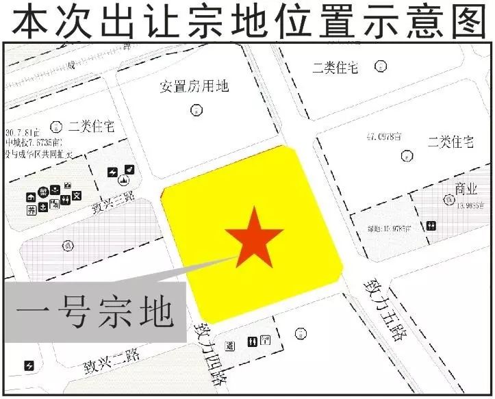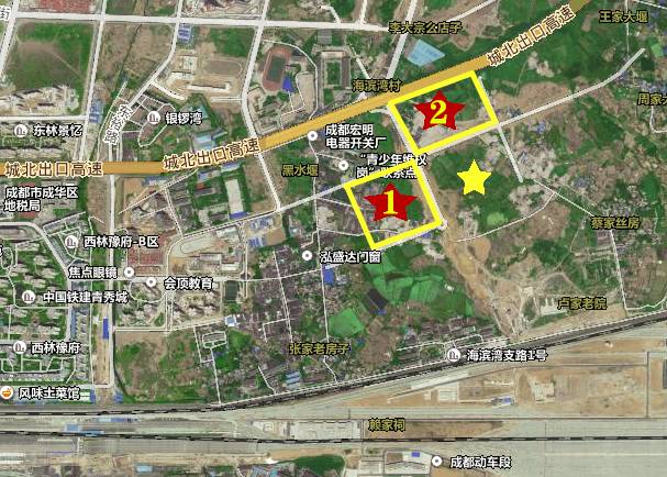 本次拍卖的成华区1号宗地与2号宗地,与8月25日挂出将于9月14日拍卖的宗地(黄星标记处,起拍楼面地价为6800元/平方米)紧紧相邻。