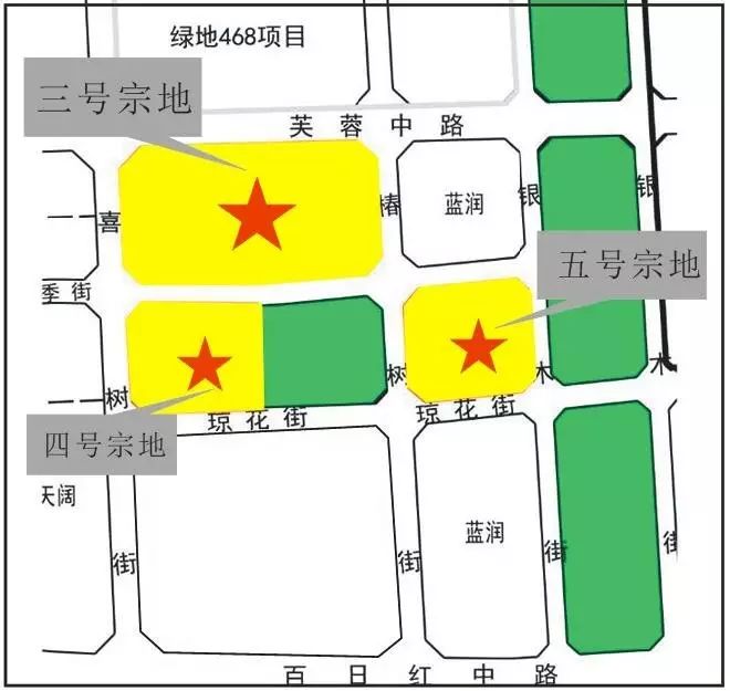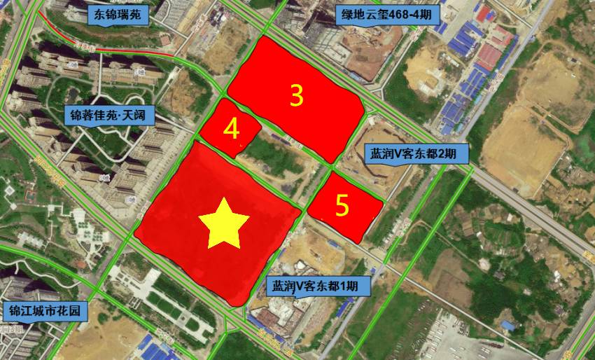 而本次拍卖的锦江区的3/4/5号宗地,也与8月25日挂出将于9月14日拍卖的宗地(黄星标记处,起拍楼面地价为7990元/平方米)紧紧相邻。