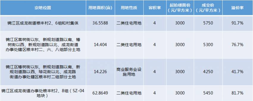 9月8日,成都市国土资源局挂出了《成都市拍卖出让国有建设用地使用权公告(成公资土拍告[2017]24号)》文件,将于2017年9月28日10时拍卖5宗主城区住宅用地,其中2宗位于成华区青龙,3宗位于锦江区三圣乡,且容积率都在2.5以下。