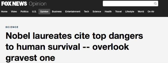 【科学技术意外后果或成人类最大威胁】50位诺贝尔奖获得者最近列出了他们认为对人类最大的风险。他们列出的排名前11位的危险中,有七个是人类创新意想不到的后果,包括:由人类引起的环境退化;核战争;耐药致病的微生物;互联网假新闻泛滥;人工智能;强大的成瘾药物;和社交网络潜在的广泛的隐私侵犯。