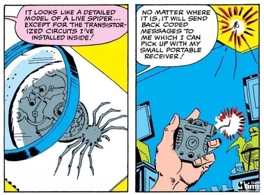 抱上了Tony老师的大腿,小蜘蛛装备的黑科技指数直线攀升,最抢眼的莫过于胸前的Logo不再只是装饰,而是一个货真价实的“蜘蛛追踪器”。漫画中的追踪器藏在腰带(电影中终于加入了腰带设计)由小蜘蛛一手打造,通过投掷与发射的形式附着在被调查对象身上。