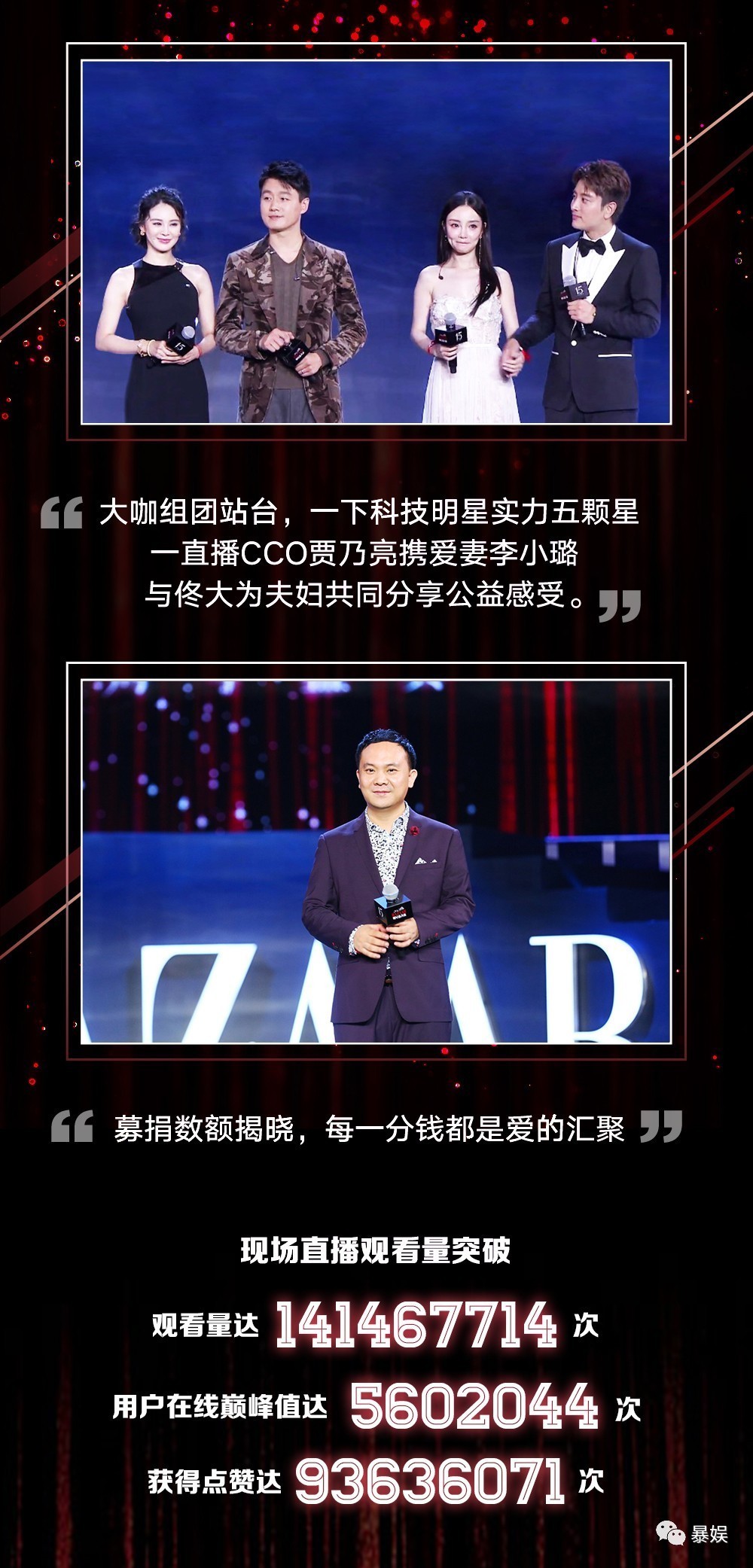 就拿芭莎明星慈善夜来说,2016年一下科技首次联合芭莎明星慈善夜,发起#画出生命线#的活动,活动一经推出,便有140多位明星参与其中,微博话题阅读量达 18.6 亿次,讨论量达 185.9 万,明星直播视频播放次数共计 4 亿次,累计捐出善款合人民币 424.7 万元(含芭莎慈善夜现场筹款)。