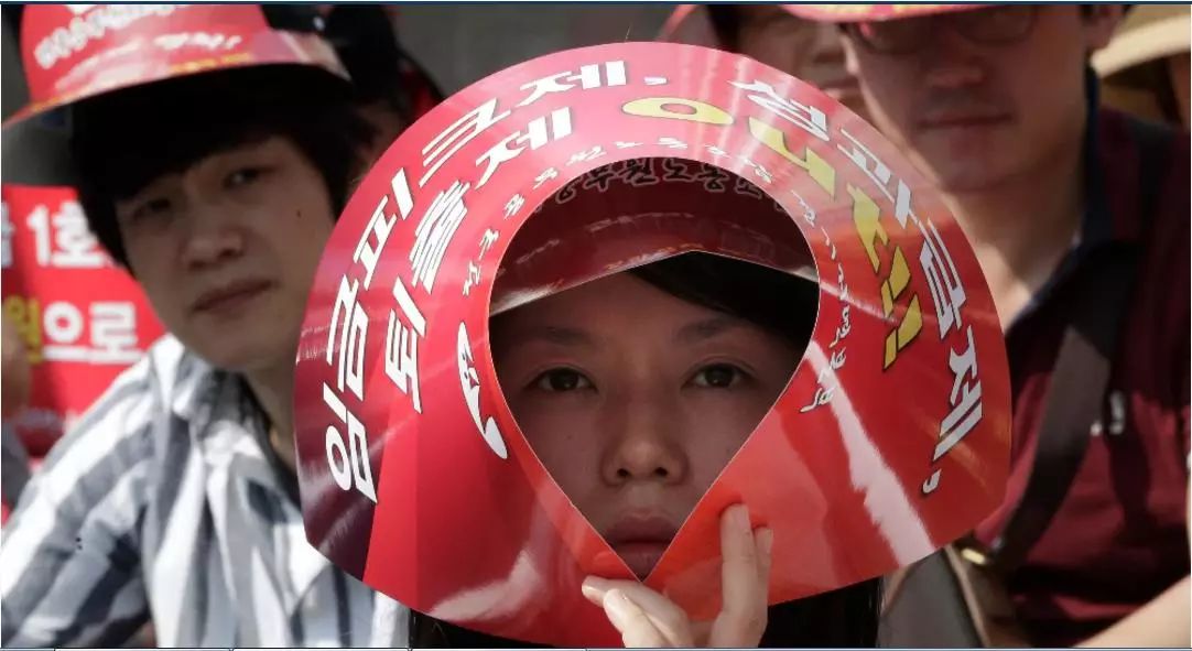根据韩国统计厅2013年数据调查,韩国全国将近208.8万位月薪制劳工,有超过11.8%的比例,也就是21万上班族,领不到当时法规最低时薪4,860韩元 ——即雇主使用各样各样的借口与手段,“合法地”支付给工人低于基本工资的薪水。