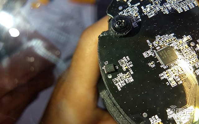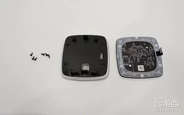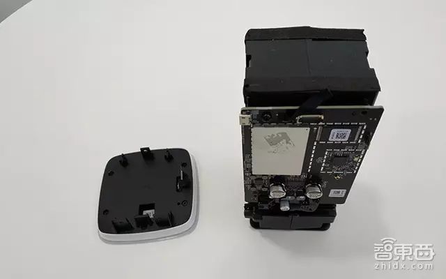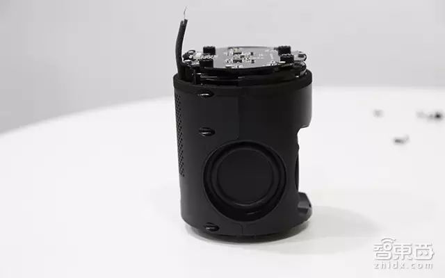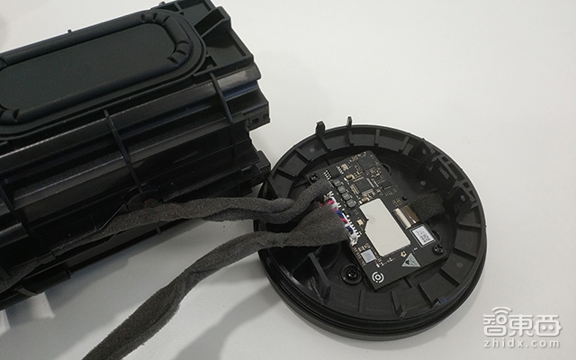 没错,麦克风阵列就在这个黑色的外壳之下。移去周围一圈螺丝钉,就可以将黑色的外壳去掉。