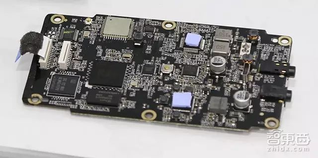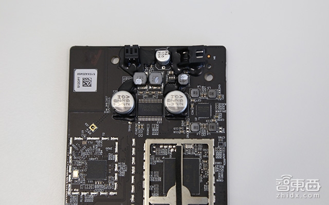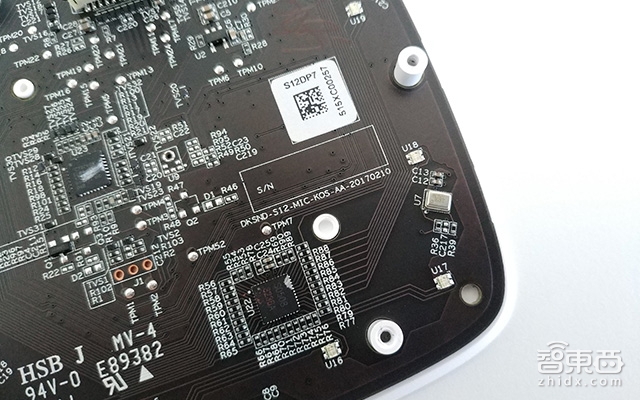 而剩下的部分就是机身最终要的部分了,包括两块核心电路板和功放单元。先看麦克风阵列板,咋一看该面板显得十分精致,与叮咚A1一样的是,叮咚2代使用的还是7+1麦克风阵列,即电路板周围均匀分布7颗麦克风和正中间一颗麦克风。