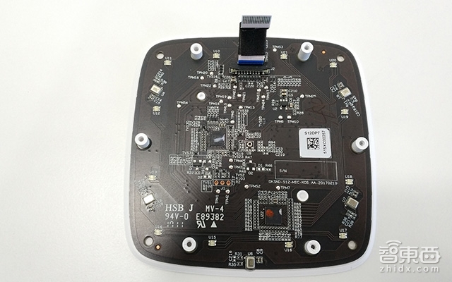 整个机身大体可分为三部分,顶部的LED面板、中部的麦克风阵列板,以及下部的发音单元,而主板则位于发音单元背部。
