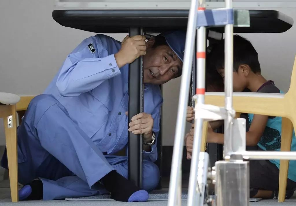 日本千叶市,日本政府实施地震综合防灾演练,日本首相安倍晋三参与到演练当中。
