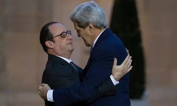 法国总统奥朗德见到美国国务卿克里时,他本想给克里一个法式贴面吻,但没想到克里还是十分保守。尴尬的两人相视一愣,就这样结束这个尴尬的吻。