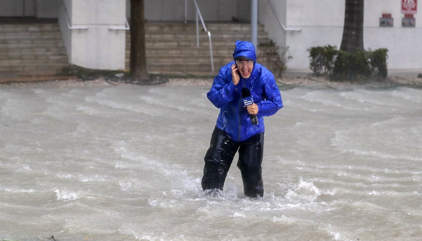 四级飓风艾尔玛周末登陆美国佛罗里达州,带来狂风、暴雨和洪水,导致数百万家庭停电,很多地方一片汪洋。就在大批民众撤离受影响严重地区的同时,各路记者却留了下来,站在狂风大雨中发回现场报道。