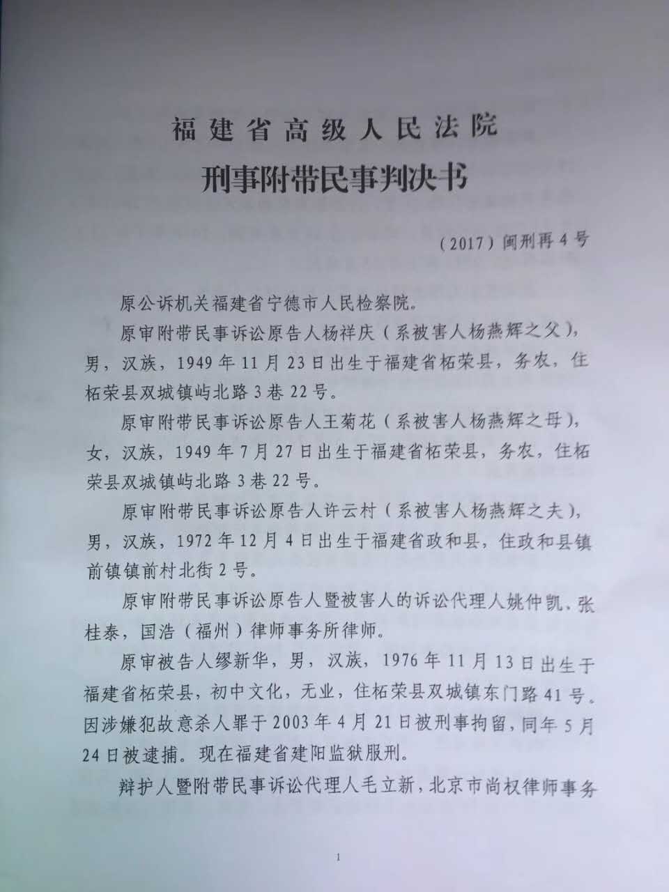 彼时,除缪新华仍在福建省建阳监狱服刑之外,其他四名原审被告人均已刑满释放。而缪德树在出狱之后,已于2016年6月13日不幸因病去世。