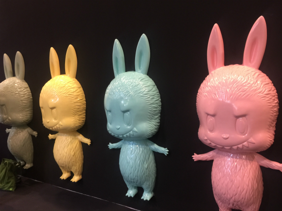 国内比较知名的潮流玩具零售商,则是这场展览的主办方泡泡玛特(POP MART),这家诞生于2010年的公司,正在从零售商转型聚焦潮流玩具IP的孵化和产品开发业务。首先是和艺术家的合作。2016年,泡泡玛特和香港设计师Kenny Wong签约,把他的作品Molly规模化地推向市场。Kenny负责设计,泡泡玛特负责从开模、生产、宣传到销售的其余环节,在一年时间里卖出了近100万个。