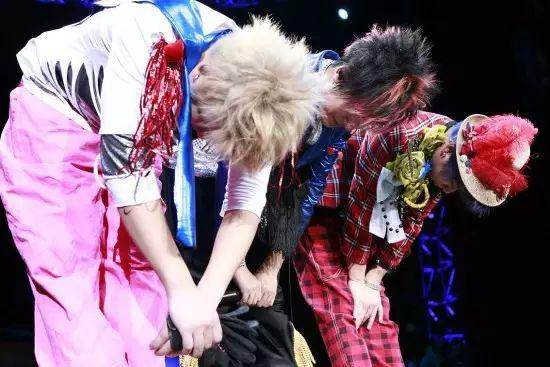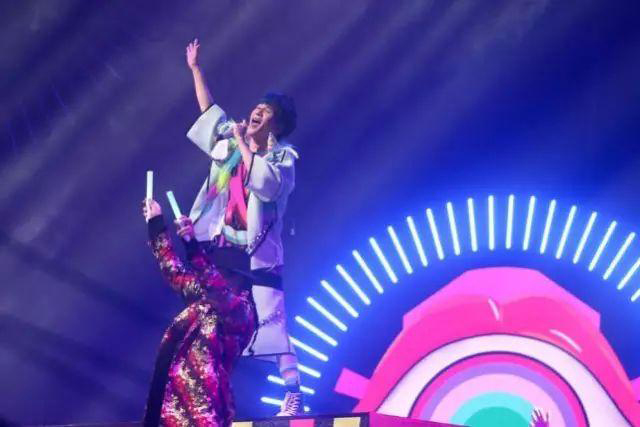 大张伟变着花样和现场观众互动:和粉丝的“接吻”游戏,荧光棒互动教学、即兴京韵大鼓,让人应接不暇。